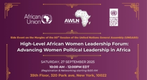 New York, September 27, 2025 — The Africa Women Leaders Network (AWLN) is set to host a landmark high-level forum on women’s political leadership in New York, on the margins of the 80th Session of  United Nations General Assembly(UNGA80). This event will bring together government delegates, parliamentarians, civil society actors, and youth leaders to chart a bold path forward for women’s leadership across Africa and the world under the theme, “High-Level Africa Women’s Leadership Forum: Advancing Women’s Political Leadership in Africa.”